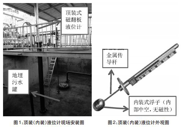 某氣田某井區集氣站地埋污水罐采用的是頂裝式真空夾套型磁翻板液位計,該區塊集氣站使用的是地埋污水罐,主要作用是對集氣站內生產污水進行沉降。在運行過程中,污水罐液位計故障導致顯示數據不準,一方面對污水液位情況掌握不準確,另一方面會出現不安全因素,甚至安全事故。該井區地埋污水罐使用的液位計為頂裝式磁翻板(磁浮子)液位計,根據液位計磁性材質所在位置的不同頂裝式真空夾套型磁翻板液位計也稱為內裝式真空夾套型磁翻板液位計。本文就頂裝式真空夾套型磁翻板液位計在延長氣田某井區應用情況進行探討并對目前頂裝式真空夾套型磁翻板液位計常見故障提出解決措施。